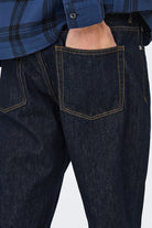 | Storlek | Midja i tum | Midja (cm) | Höft (cm) | Innerbenslängd – jeans 32" (cm) | Innerbenslängd – joggingbyxor (cm) |