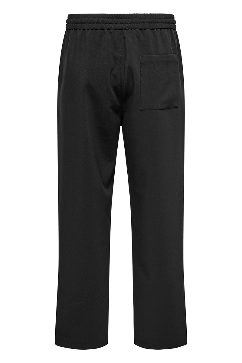 - Har 2 snedställda fickor och dragskojustering i midjan