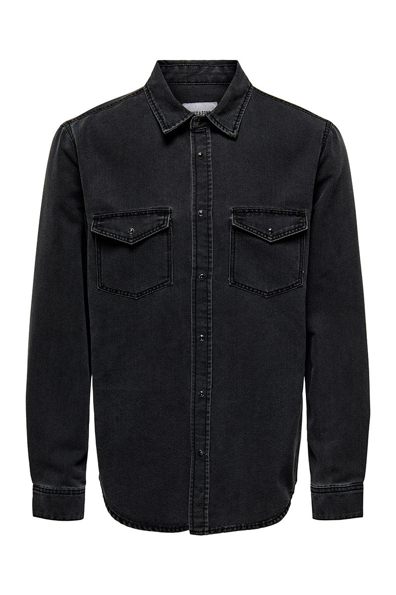 Bane Regular Fit Denim Shirt Dark Grey Denim