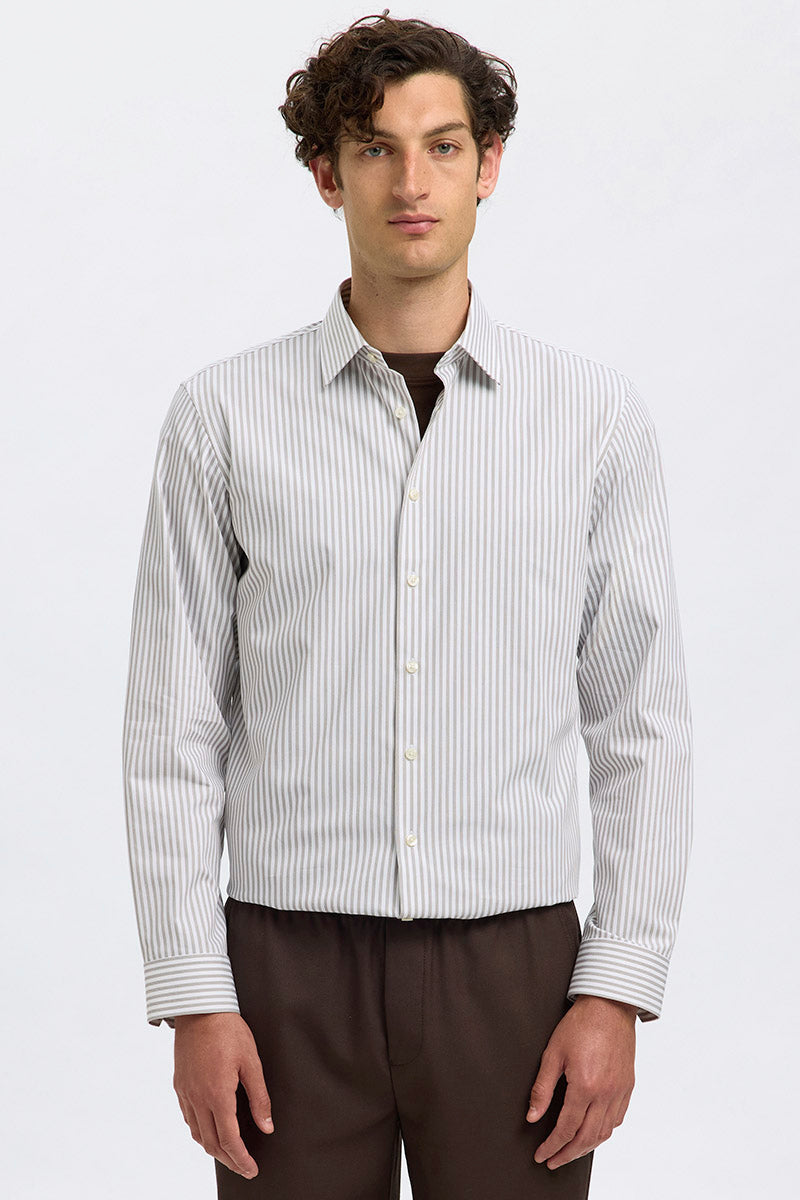 Performance Stretch LS Shirt Bright White Stripes