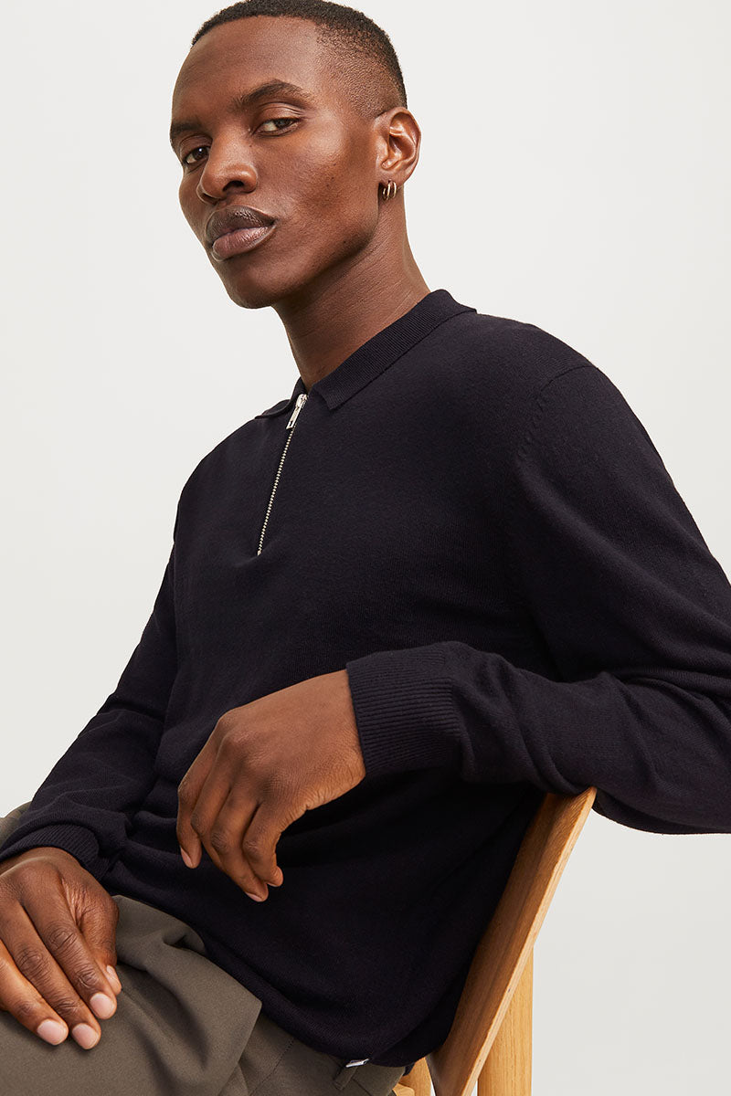 - Kommer med ribbade kanter i midjan och vid ärmsluten.