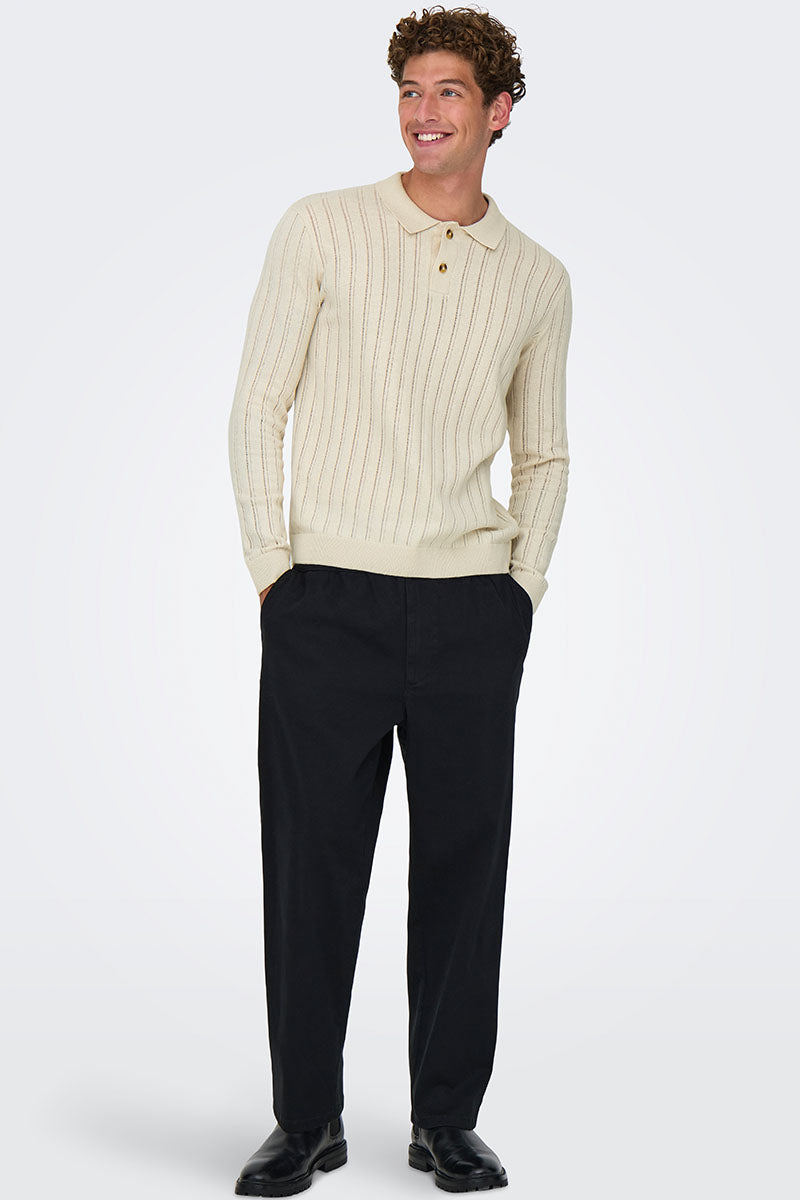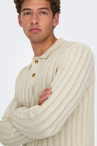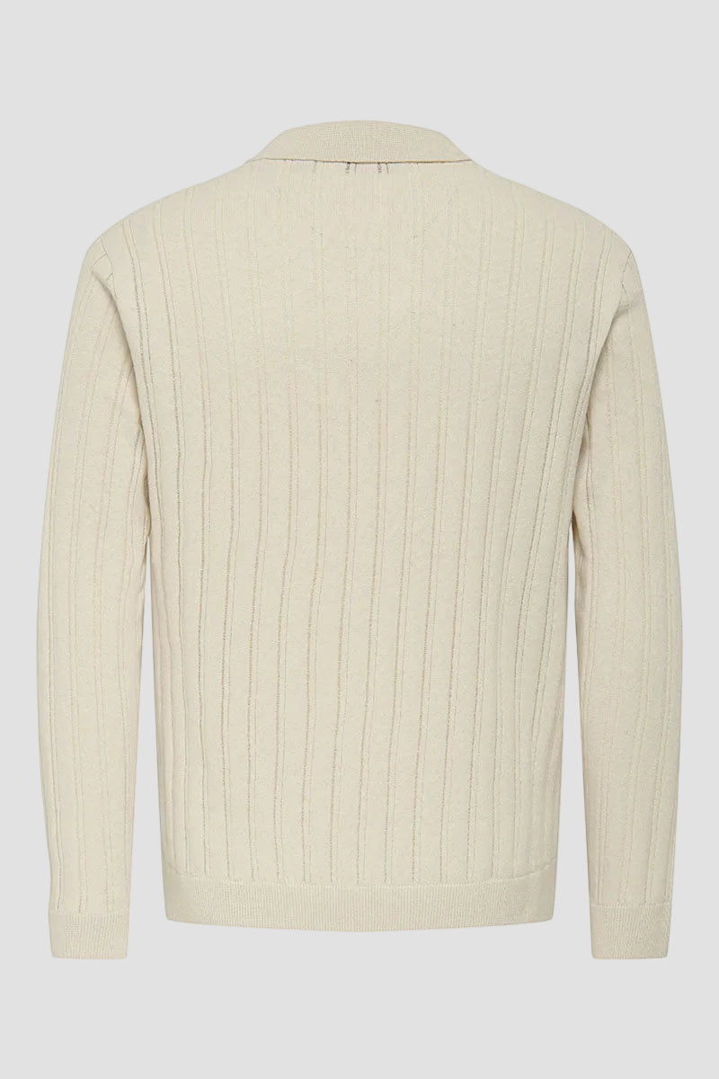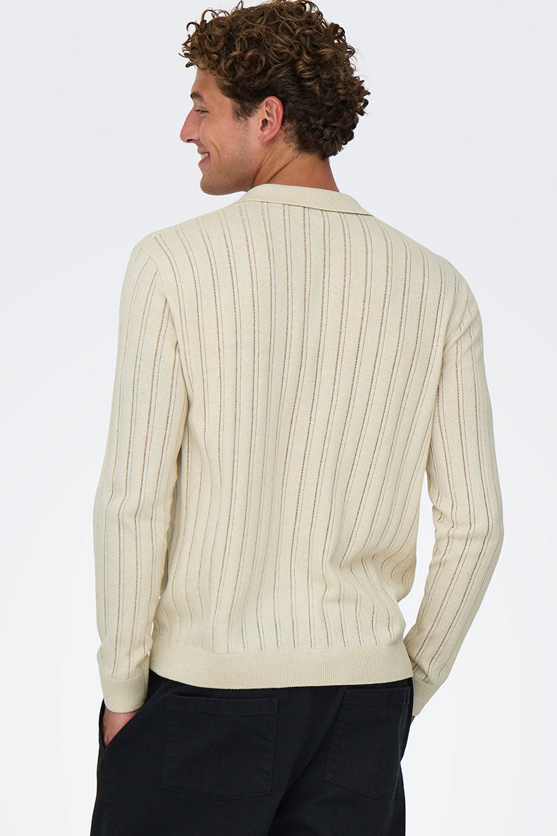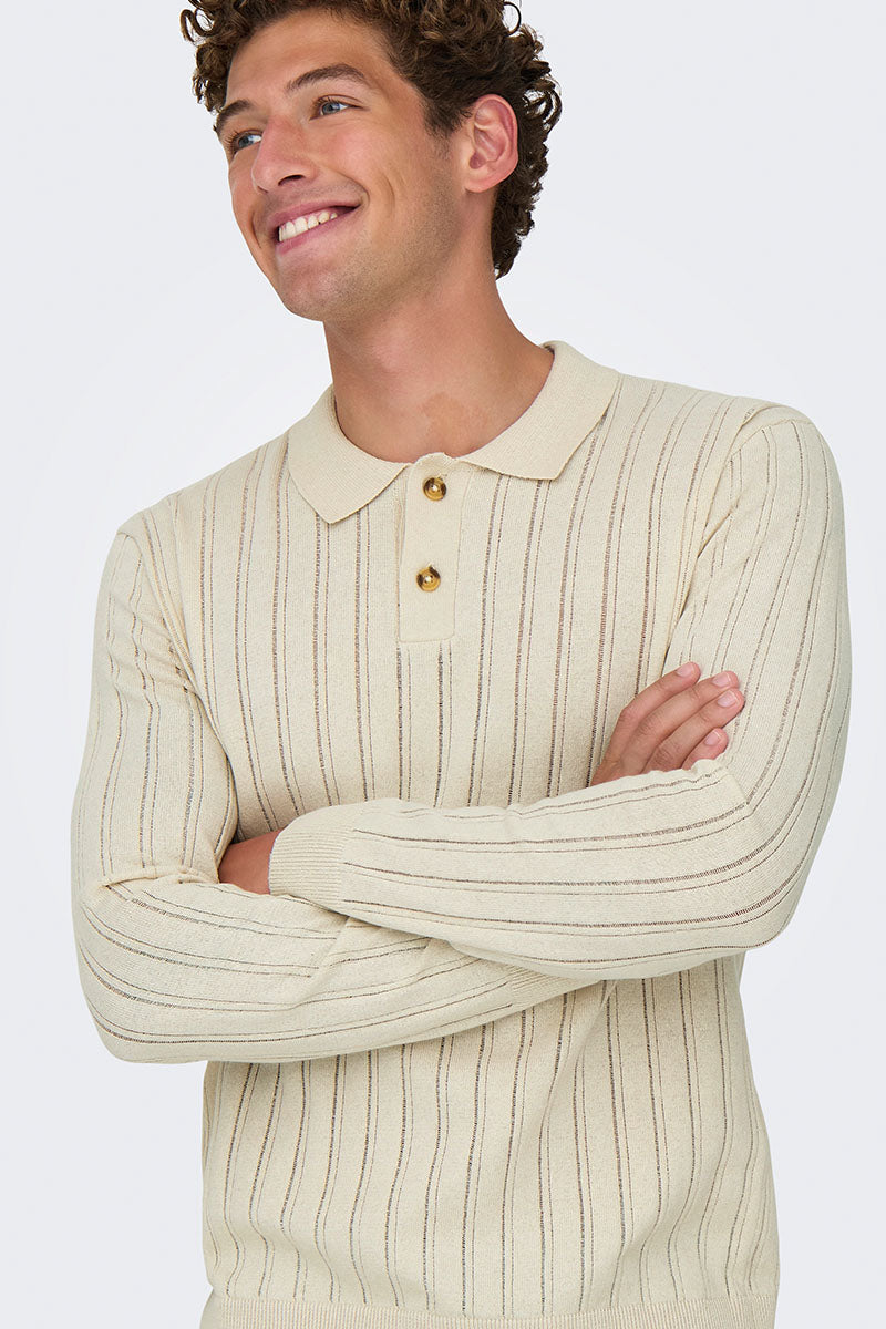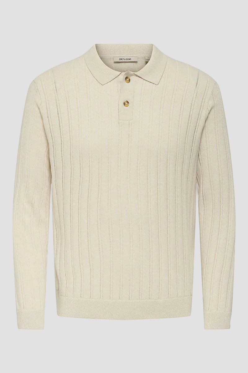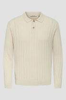 - Beigefärgad långärmad polostickad tröja i normal passform