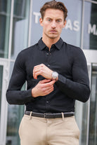 - Klassisk design: Skjortan har en klassisk krage och knäppning som ger en snygg och professionell look. Den svarta färgen gör skjortan även lämlig för högtidliga tillfällen och kan kombineras med många olika outfit.
