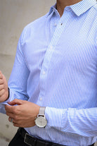 - Klassisk och stilig design: Comfort Shirt I färgen Cashmere Blue är en lyxig skjorta med en elegant och tidlös design. De blå ränderna skapar en sofistikerad look som är perfekt för både formella och vardagliga tillfällen. Den klassiska krage och knappningen gör skjortan mångsidig och enkel att styla.