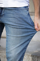 - Ljusblå jeans i slim fit