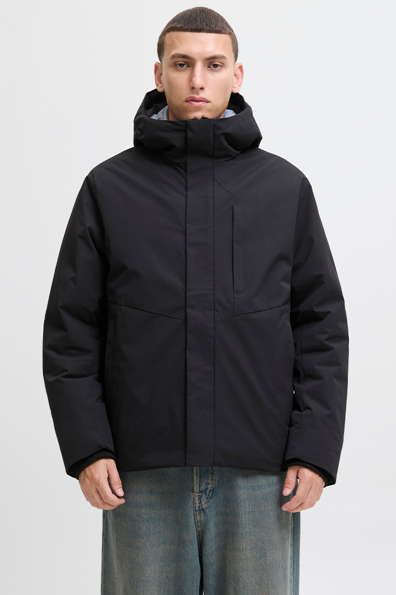 - Ensfärgad parkasjacka med huva