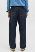 | Storlek | Midja i tum | Midja (cm) | Höft (cm) | Innerbenslängd – jeans 32" (cm) | Innerbenslängd – joggingbyxor (cm) |