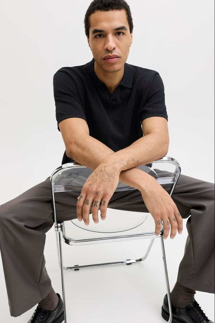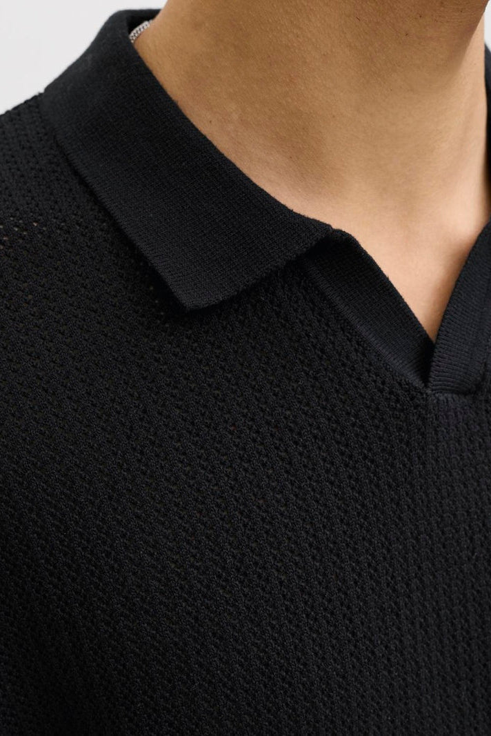 Jerry Knit Split Neck Polo SS Black