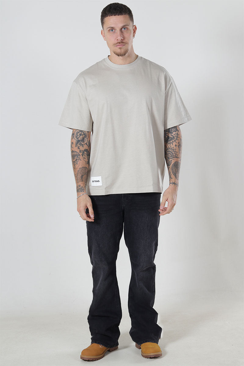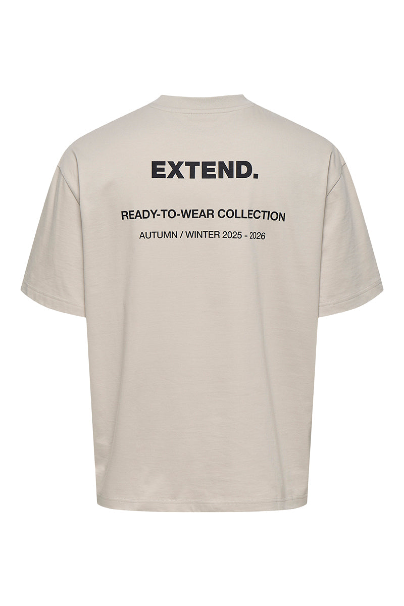 - T-shirten har texttryck på ryggen samt en liten sydd etikett i sidan