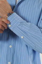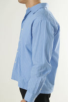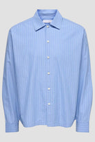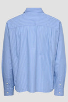 Denna relaxade långärmade skjorta med skjortkrage är tillverkad av 100 % bomull, vilket ger en mjuk och bekväm känsla hela dagen. Skjortan har en randig design i en mjuk blå nyans som heter Skyway, vilket ger en stilren och avslappnad look. Passar perfekt för vardagsbruk eller mer avslappnade formella tillfällen.