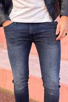 Denna skinny fit-jeans med låg midja är en tidlös klassiker med fem fickor, designad för en smal passform som följer benets linje från lår till benslut. Tillverkad för komfort och stil, kombinerar den en blandning av bomull, återvunnen polyester och elastan som ger både hållbarhet och flexibilitet. Perfekt för vardagsbruk under sommarsäsongen.