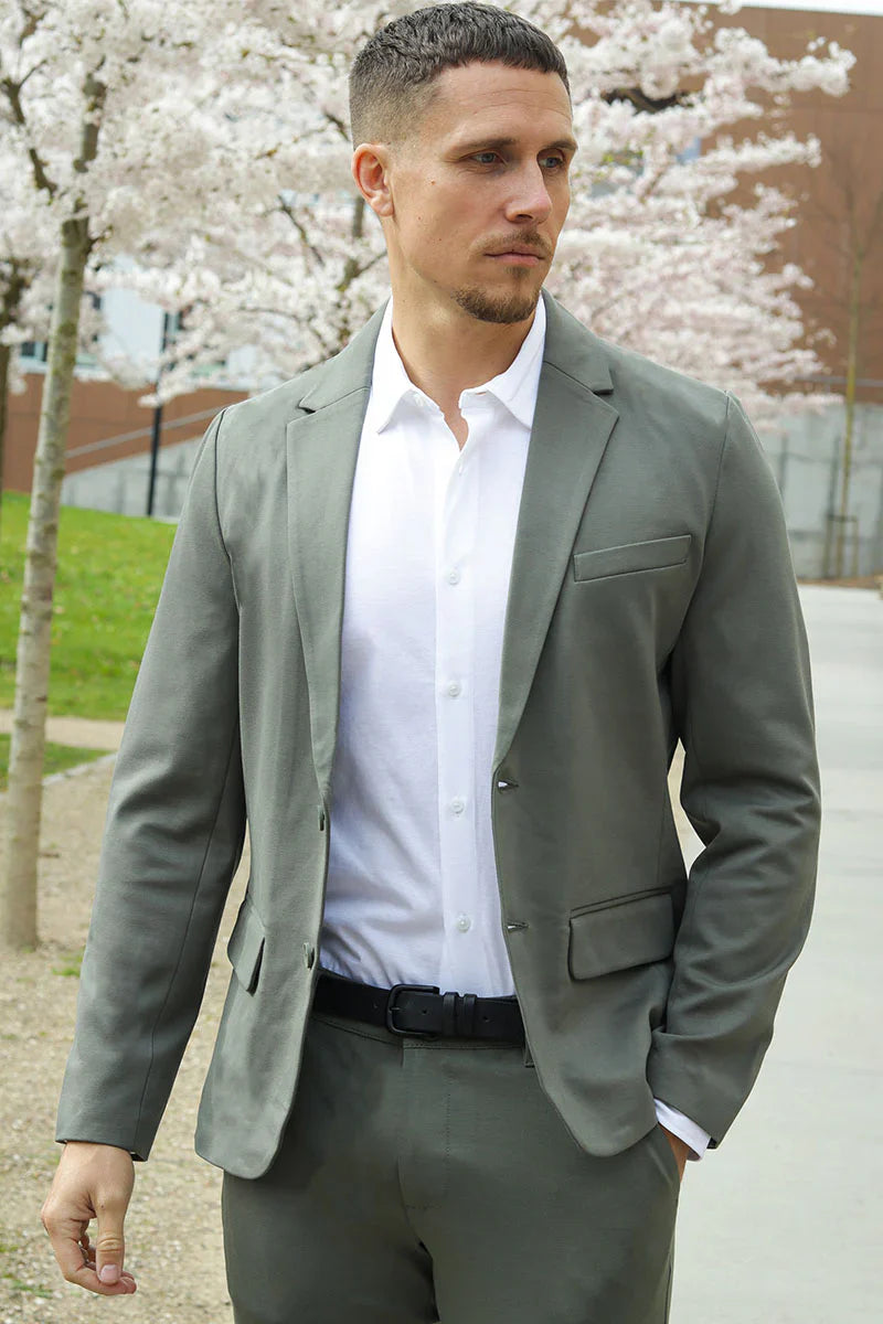 Tillsammans bildar kavajen och byxorna ett set som ser ut som en klassisk kostym, men känns betydligt mer avslappnat. Stretchmaterialet gör det perfekt för arbete, möten, event och vardagsbruk, där komfort är lika viktigt som stil. En outfit som ser skarp ut – och känns ännu bättre att bära.