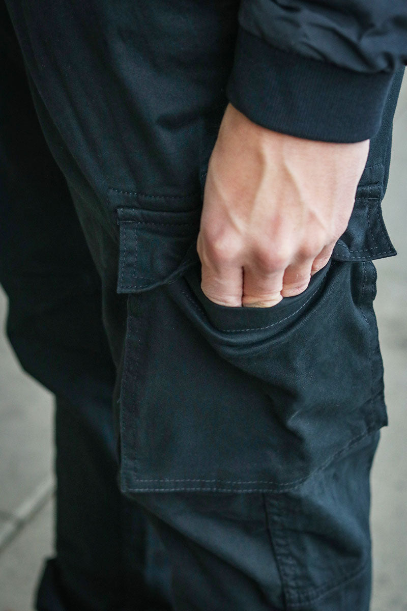 Dessa cargo-byxor har en tapered passform och är perfekta för vardagsbruk, både i skolan eller på jobbet. Tyget är vävt i twill, vilket ger en unik struktur och en mjuk och slät yta. Byxorna har praktiska cargofickor och elastiska muddar nederst på benen för en bekväm passform. Dessutom finns bältesögla för att enkelt kunna kompletteras med ett bälte.