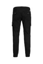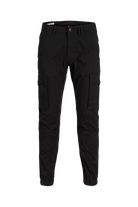 Jack & Jones cargo pants med avsmalnande fit. Kommer i ett bekvämt twill material med stretch. Tyget är behandlad med ett ekologiskt enzymtvätt, som ger denna svarta färg ett slitet look. Utrustad med signaturfickor på låren, två framfickor och två bakfickor. Spänns med blixtlås och toppknapp: Kvalité: 98% bomull, 2% elastan.