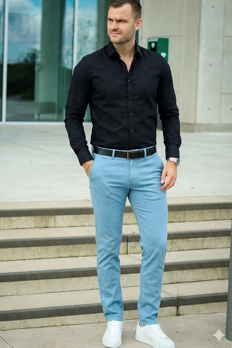 Denna Bowie Chinos är ett tidlöst val för den som vill ha ett stilrent och smart-casual alternativ till jeans. Byxorna är tillverkade i ett vävt tyg som är hållbart och starkt utan att tänjas ut, perfekt för vardagsbruk. Med en låg midja och en slim fit design följer de kroppens linjer på ett snyggt sätt. Chinosen har praktisk dragkedja framtill samt fickor både fram och bak, vilket gör dem både funktionella och snygga.