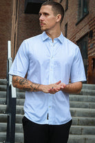 Comfort Shirt i färgen Cashmere Blue Stripe är ett sofistikerat och stilrent tillskott till varje garderob. Den klassiska designen har korta ärmar och en stretchig bekväm passform vilket gör den perfekt för sommarkläder. Skjortan har också en traditionell krage vilket ger en touch av klass till vilken outfit som helst. -