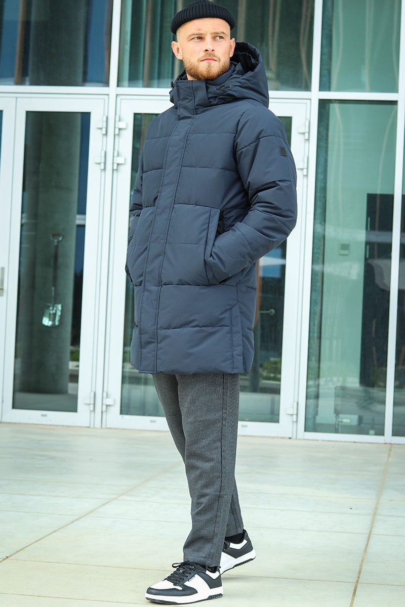Carl Long Quilted Coat Navy Blazer