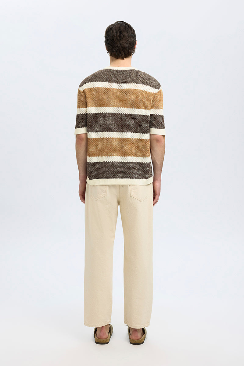 Ginger SS Knit Relaxed Fit Stripe Tee Egret