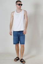 Edge Straight Fit Denim Shorts Medium Blue Denim