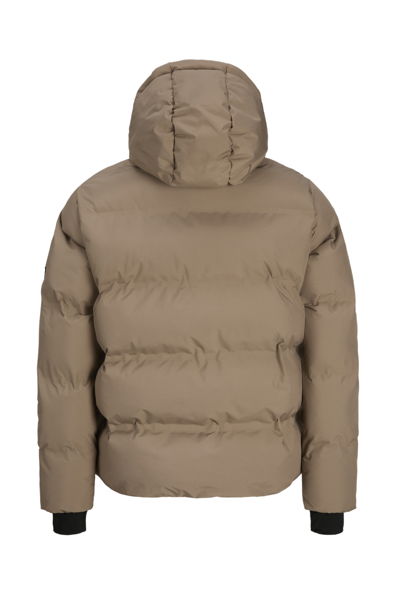 Denna vadderade jacka håller dig varm och skön när temperaturen sjunker. Jackan har lång ärm och en huva med justerbar dragsko som ger extra skydd mot väder och vind. Med sitt slitstarka vävda tyg förblir plaggformen stabil utan att töjas ut. Ribbstickade muddar vid ärmarna bidrar till en bra passform och skyddar mot kalla drag. Jackan är försedd med dragkedja framtill för enkel stängning. Den korta längden gör den lätt att bära och kombinera med olika kläder. Insidan är klädd med en bekväm polyesterfoder som tillsammans med det syntetiska fiberfodret ger både en lätt känsla och varmt skydd.