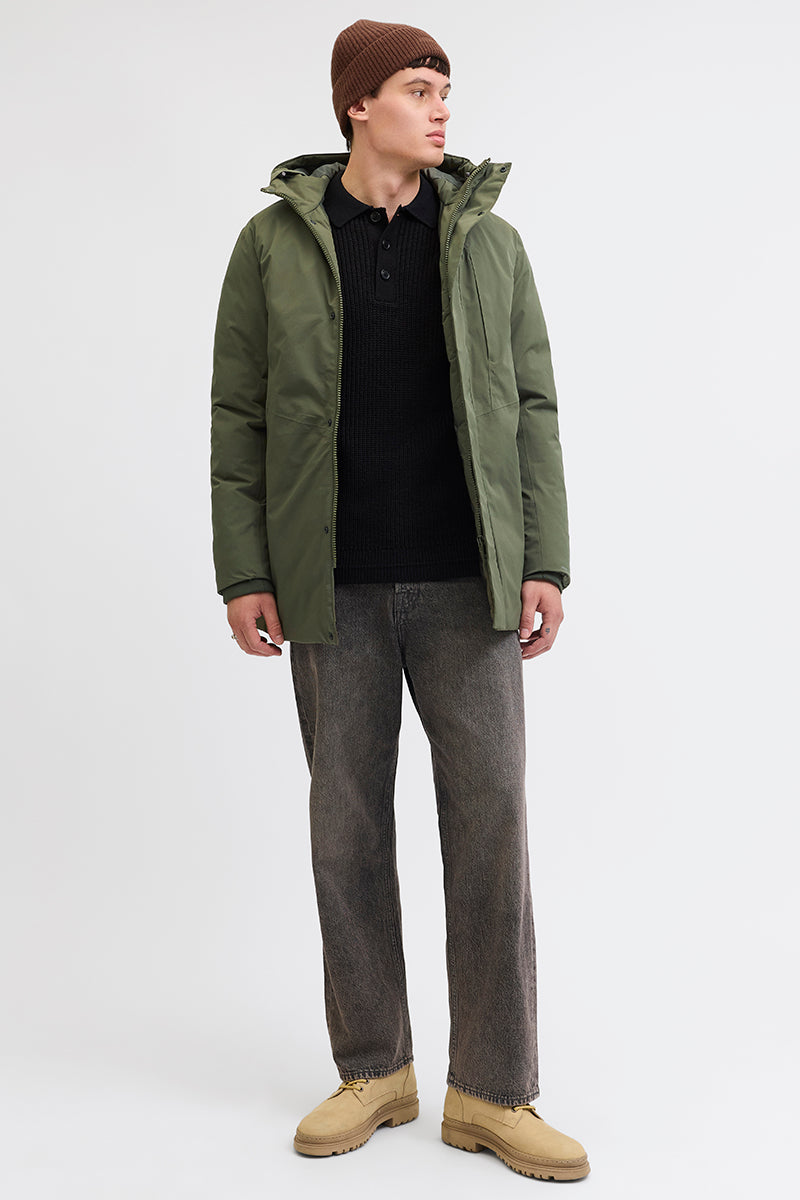 - Ensfärgad parkasjacka med huva
