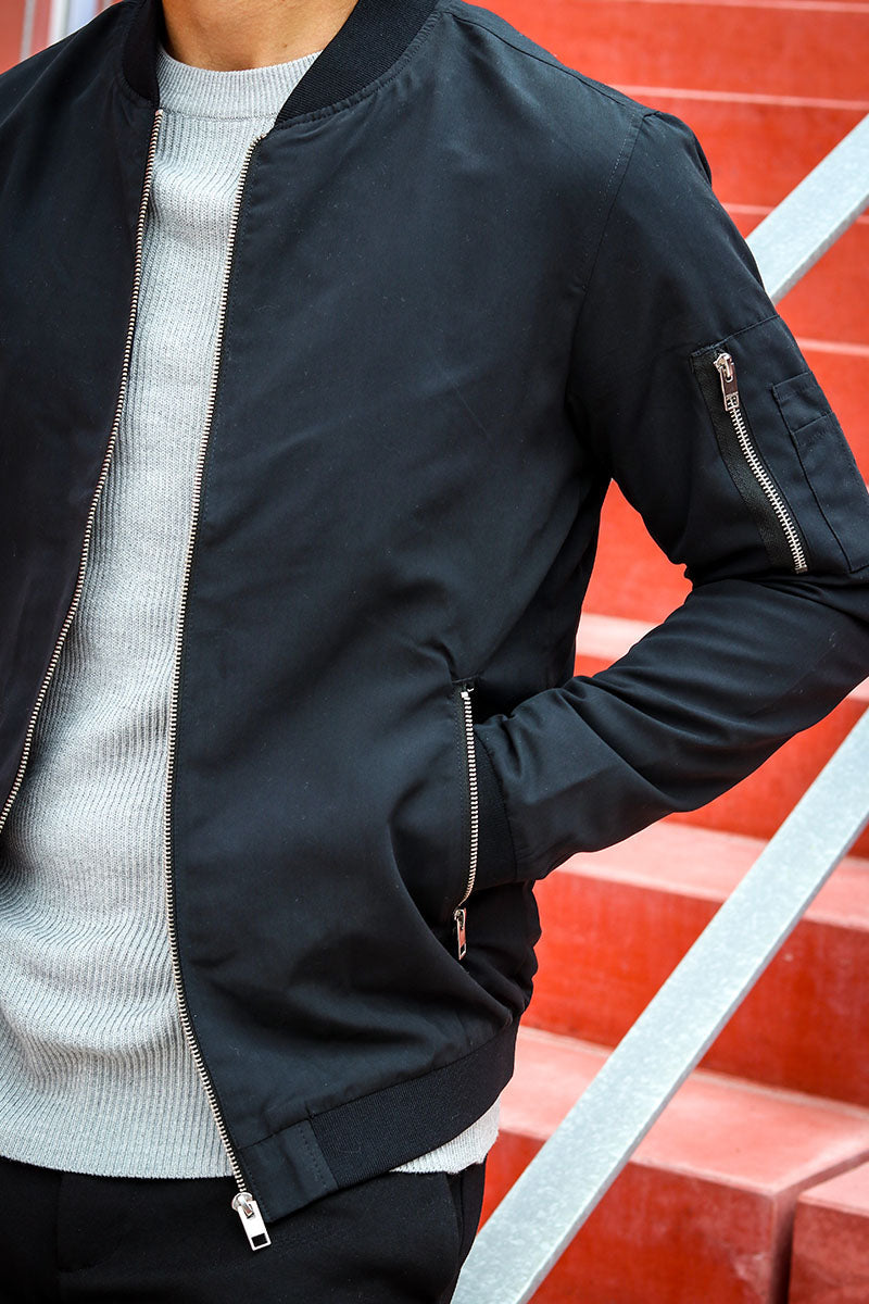 Denna bomberjacka är ett stilrent och praktiskt val för vardagsbruk. Den är tillverkad i ett lätt och tunt tyg som ger en behaglig och andningsbar känsla. Jackan har lång ärm och en klassisk basebollkrage, samt stängs med dragkedja för enkel användning. För extra funktionalitet finns framfickor och en ficka på ärmen, alla med dragkedja. Materialet innehåller minst 50% återvunnen polyester, vilket bidrar till en mer hållbar garderob.