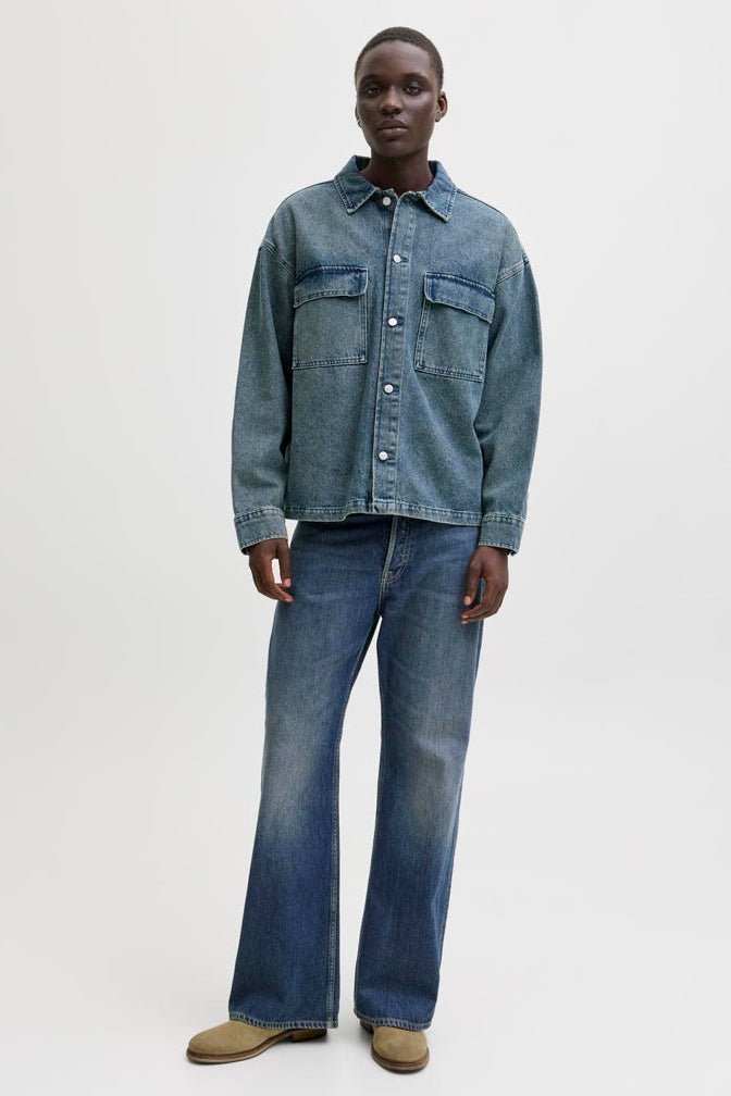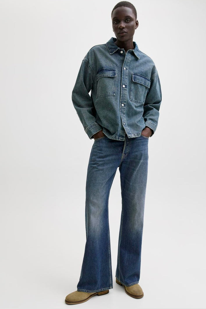 Denna flared jeansmodell med hög midja är en tidlös och avslappnad stil som kännetecknas av klassiska femficksdetaljer. Jeansen har en stonewash-finish som ger ett mjukt, slitet utseende och en bekväm passform med vidgad benöppning. Materialmixen av bomull och återvunnen bomull gör dem mjuka och andningsbara, vilket bidrar till skönt och hållbart användande.