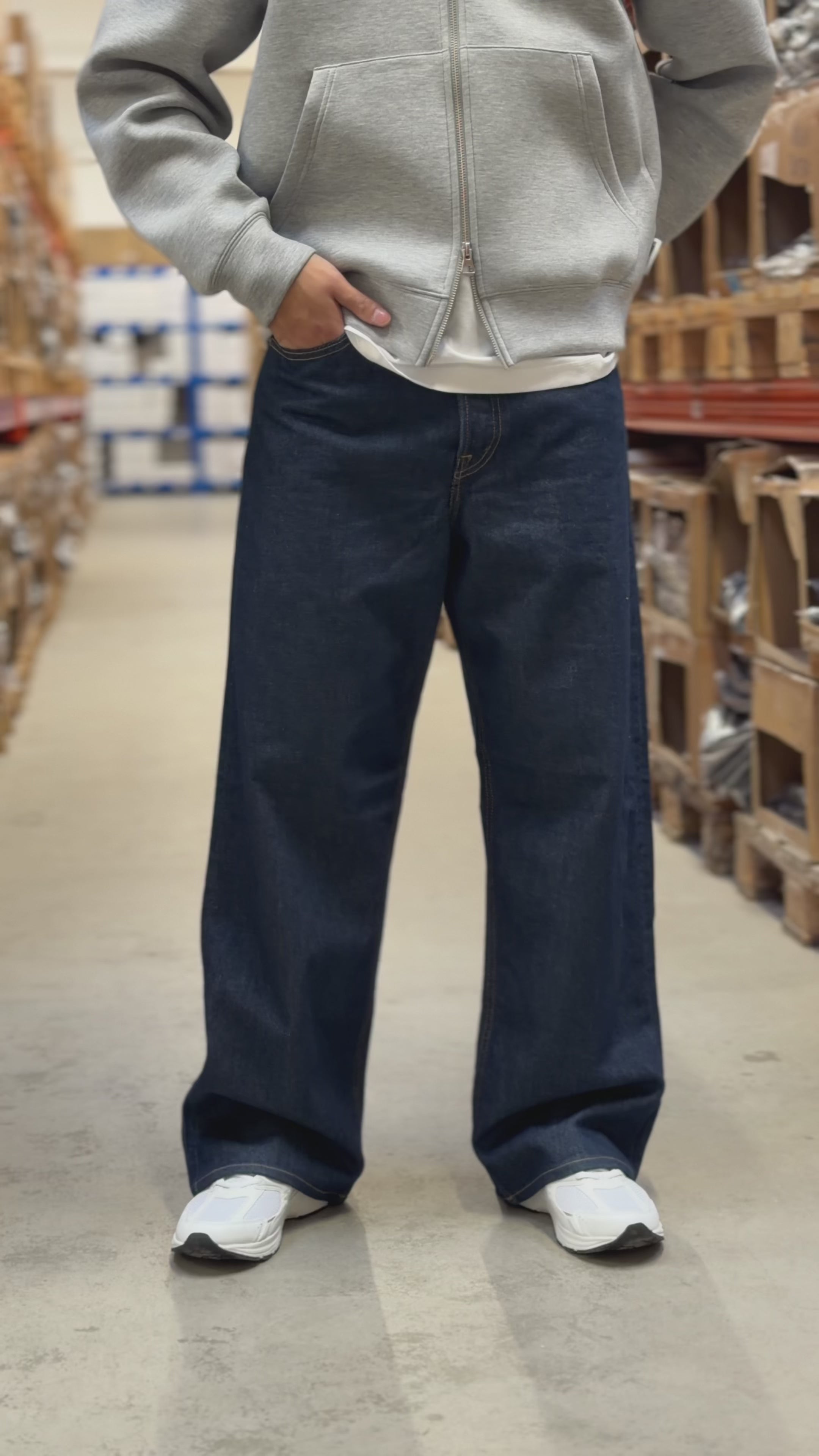 Dessa Wide fit-jeans är utformade med klassisk femficksdetalj, vilket ger en tidlös och enkel stil som påminner om originaldesignen. De har en midjeresning med knappgylf och en rymlig passform med baggy lår, knän och vida benslut. Jeansen är tillverkade av bomull, ett naturligt och mjukt material som andas väl, vilket gör dem bekväma att bära hela dagen. Tvätten är genomsköljd för att ta bort överflödig färg och skapa en mjuk känsla samt ett rent utseende.