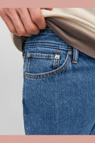 Alex jeans kommer med diskret Jack & Jones broderi på bakfickorna och en klassisk knappstängning. Broderiet lägger till en subtil detalj av stil till jeansen medan knappstängning säkerställer en säker och tidlös knäppning. -
