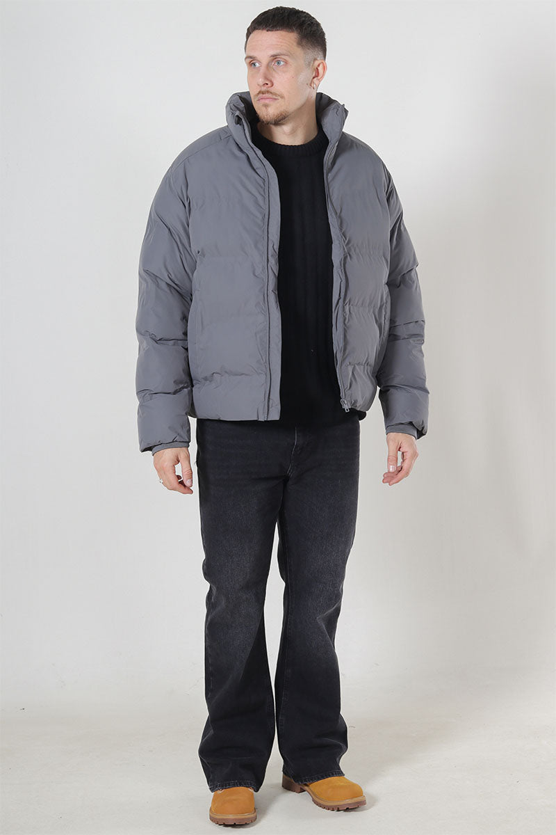 Denna pufferjacka har en hög ståkrage och långa ärmar som ger extra skydd mot kyligt väder. Jackan är tillverkad i ett slitstarkt vävt tyg som inte töjer sig, vilket bidrar till dess hållbarhet och kvalitetskänsla. Den är fylld med platt polyesterfyllning och fodrad med polyester för en bekväm känsla. Med dragkedja som stängning är den lätt att ta på och av.