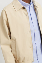- Kort jacka med resår i nederkant och ärmar samt en spridd krage