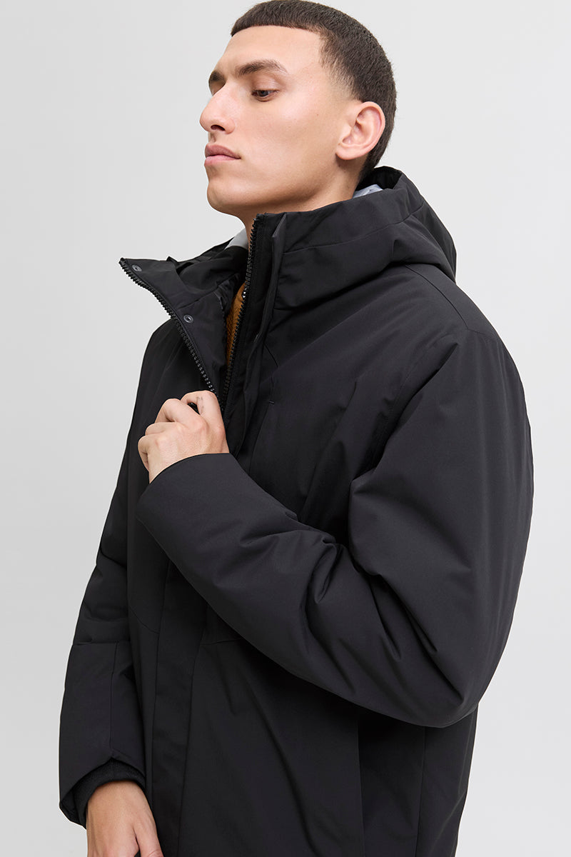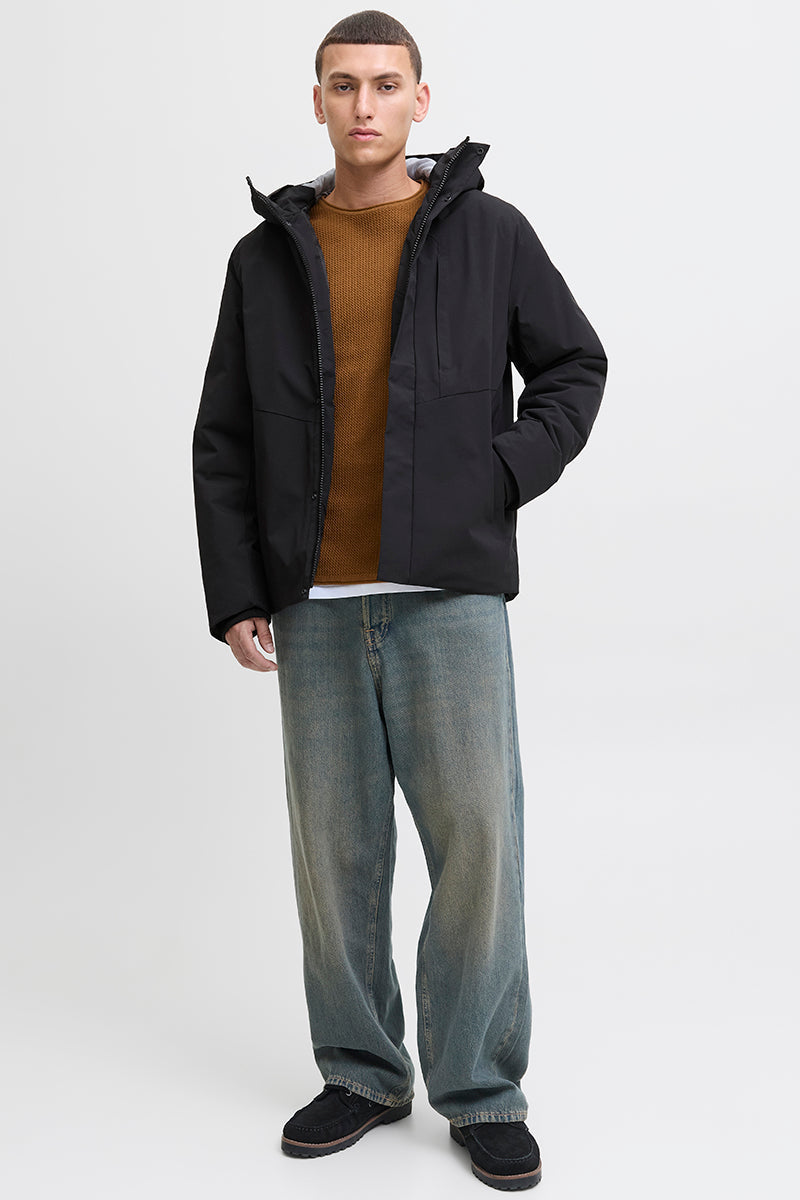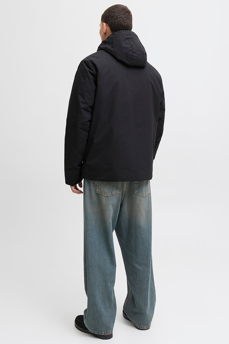 - Ensfärgad parkasjacka med huva