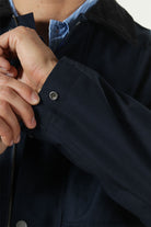 Denna Cotton Jacka är ett stilrent och bekvämt plagg tillverkat av 100% ekologisk bomull, vilket ger en mjuk och hållbar känsla. Jackan har en klassisk spridningskrage och långa ärmar med tryckknappsmuddar, som bidrar till en praktisk och snygg design. Stängningen sker med en tvåvägs dragkedja kombinerad med tryckknappar, vilket gör den enkel att justera efter behov. Den korta passformen gör jackan mångsidig för vardagsbruk och passar väl till olika outfits. Med flera fickor fram, på sidorna samt en innerficka får du gott om plats för dina tillhörigheter. Fodret i bomull säkerställer extra komfort under hela dagen. Färgen 'Sky Captain' är en djupblå nyans som ger en tidlös och diskret look.