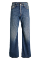 Denna flared jeansmodell med hög midja är en tidlös och avslappnad stil som kännetecknas av klassiska femficksdetaljer. Jeansen har en stonewash-finish som ger ett mjukt, slitet utseende och en bekväm passform med vidgad benöppning. Materialmixen av bomull och återvunnen bomull gör dem mjuka och andningsbara, vilket bidrar till skönt och hållbart användande.