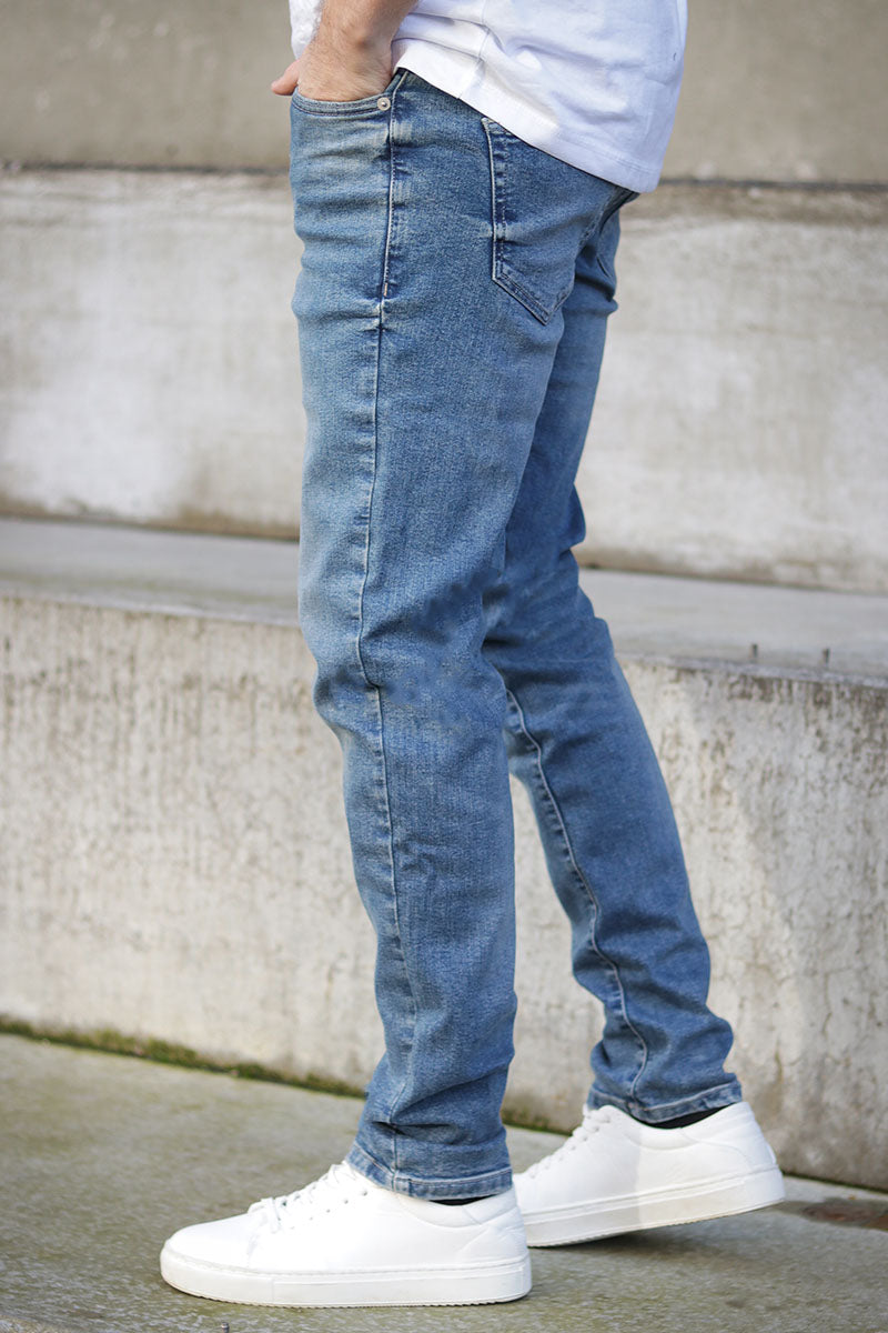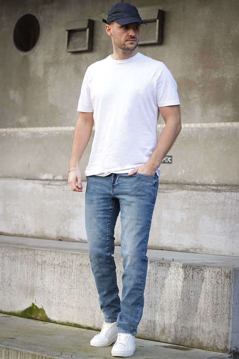 Är du i minsta tvivel om hur du ska styla din outfit med jeans, så att du uppnår den look du gärna vill ha? Bara lugn, vi vill mer än gärna ge ett par tips på vägen. Det första du ska göra är att finna ut med dig själv, vilken stilriktning du bäst kan se dig själv i. Här kan nämnas de överordnade typer: Den klassiska och stylade typen. Den rockade och rå typen. Den moderna, hipster typen. Den sportsliga typen eller den helt nere på jorden men moderna typen. Dessa fem grupperingar är självklart långt ifrån alla de möjligheter, som finns för att styla sin outfit och sin generella stil på. Det kan dock fungera som en bra gångs punkt om man är lite på bar botten, speciellt när man ska välja hur man ska matcha det med tröjor, skor eller annat tillbehör. Till den klassiska och stylade typen ville ett par fina jeans vara vägen fram. De ska gärna vara enfärgade i en mörkblå eller en beige färg. Se bort från hål och sprakliga detaljer men håll dig till den stilsäkra och rena looken. Sätt gärna dessa jeans ihop med en skjorta eller en blazer och avsluta stilen med ett klassiskt armbandsur och ett par läckra herr stövlar. Den rockade och rå typen vill befinna sig riktigt bra i ett par rippade jeans eller biker jeans då bägge har feta detaljer, en sliten och rå look. Dessa jeans går super bra ihop med en oversized t-shirt, en slitstark läderjacka och en massa tatueringar. Hoppa in i ett par rå stövlar och så är du klar! Jeans för den moderna, hipster typen vill vara de feta denim chino modellen, som är enormt moderna i ögonblicket. Gör några uppvikningar nederst vid byxbenen och matcha det ihop med ett par läckra sneakers. Det finns med andra ord många möjligheter att välja emellan. Allt från casual skjortor till bomberjackor är alltid ett säkert val. Den sportiga typen ska gärna ha ett par jeans som är behagliga att ha på. Typiskt är det inte slim fit modellen som är det första valet. Men en lång andra val av våra snygga jeans ville passa perfekt. Alla dina hoodies och t-shirts med sport logos passar perfekt ihop till våra jeans. Lägg gärna till en keps och ett par sneakers. Den sista typen som tar det lite mera med lugn och ro, kan med fördel välja ett par av våra neutrala jeans och i stort sett matcha ihop dessa med allt när det kommer till överdel.