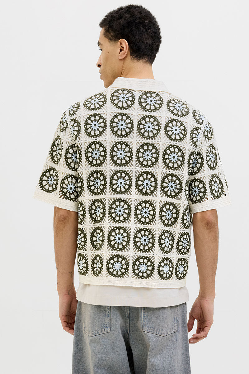 Cartagena Crochet Knit Polo Sea Salt