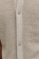 Denna stickade skjorta erbjuder en avslappnad stil som passar perfekt både till helgens jeans och över en skjorta och byxor på kontoret. Materialet är mjukt och flexibelt tack vare den platta stickningen, vilket ger god komfort hela dagen. Skjortan har en klassisk skjortkrage och korta ärmar med en normal passform som framhäver en avslappnad men ändå välklädd look.