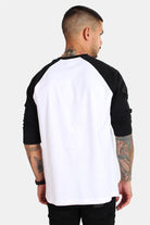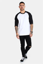 College t-shirt från Urban Classics med svart 3/4 ärm. Model: TB 366 Col: Black / White MODELLEN ÄR CA. 1,83 M, VÄGER CA. 80 KG OCH ANVÄNDER DENNA PRODUKT I STL. L