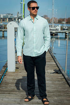 Slim Sun Linen Shirt LS Iceberg Green / White