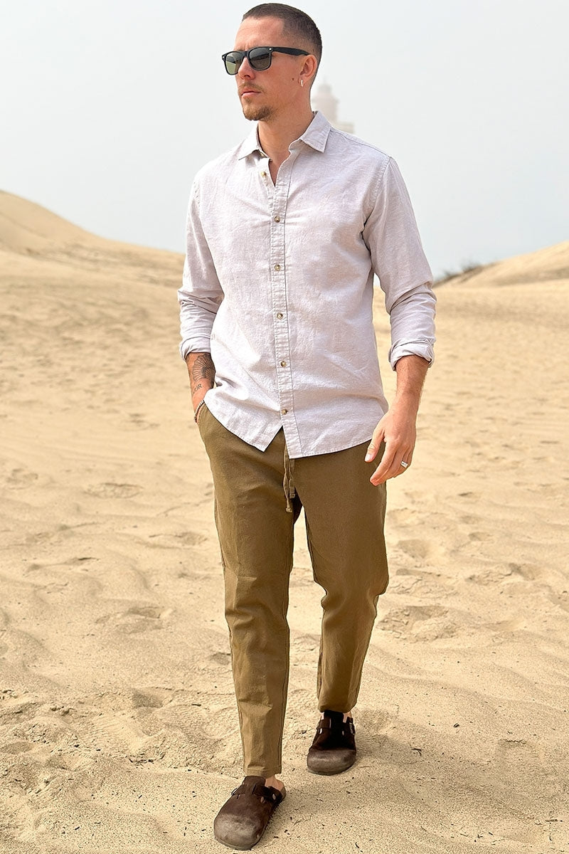Vår linnekollektin här på 2Trendy kan användas för alla tillfällen men är särskilt lämlig för de många festliga sommarevenemangen för sommarhusresan eller semestern söder ut. Oavsett om det är en avslappnad trädgårdsfest, en klassisk grillkväll eller bara en tur till stranden är du garanterad bra stil med kläder från vår linnekollektion. Testa till exempel en långärmad linneskjorta tillsammans med ett par av våra linen byxor och ett par snygga sandaler. Du kan också prova våra helt vardagliga kort ärmade linneskjortorna med ett par av våra linen shorts. Det finns många alternativ- gemensamt för dem alla är att linne är otroligt bekvämt, temperaturreglerande och stilrent. Vi har både enfärgade , randiga och mönstrade linneskjortor samt linnebyxor och shorts i jordnära färger så att du alltid kan hitta din egen stil oavsett om du föredrar den mer avslappnade looken eller den mer utåtriktade stilen.