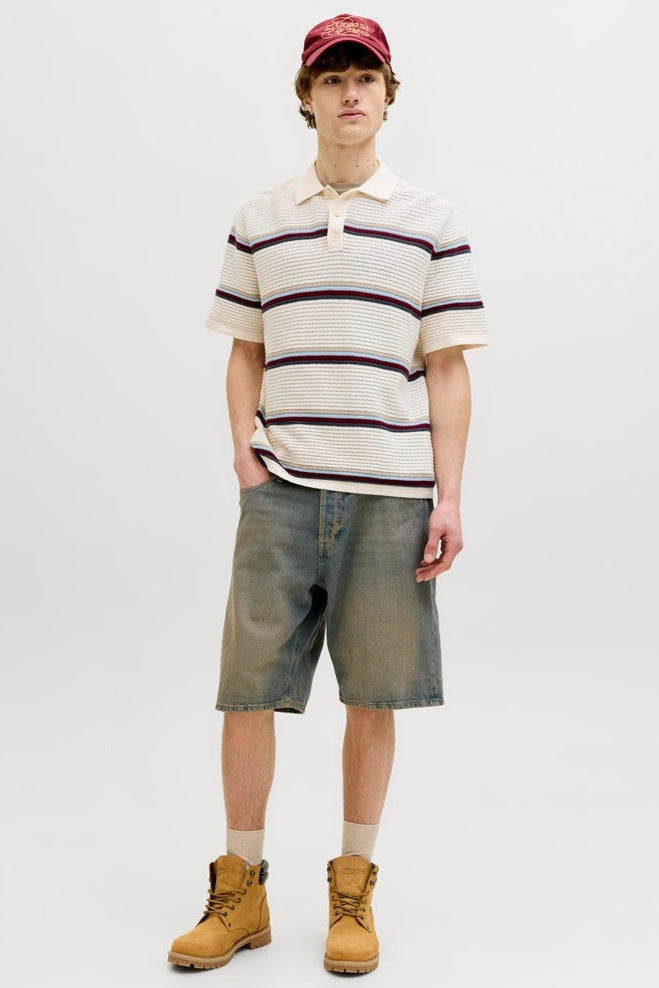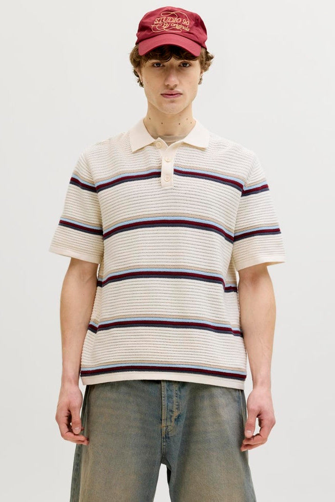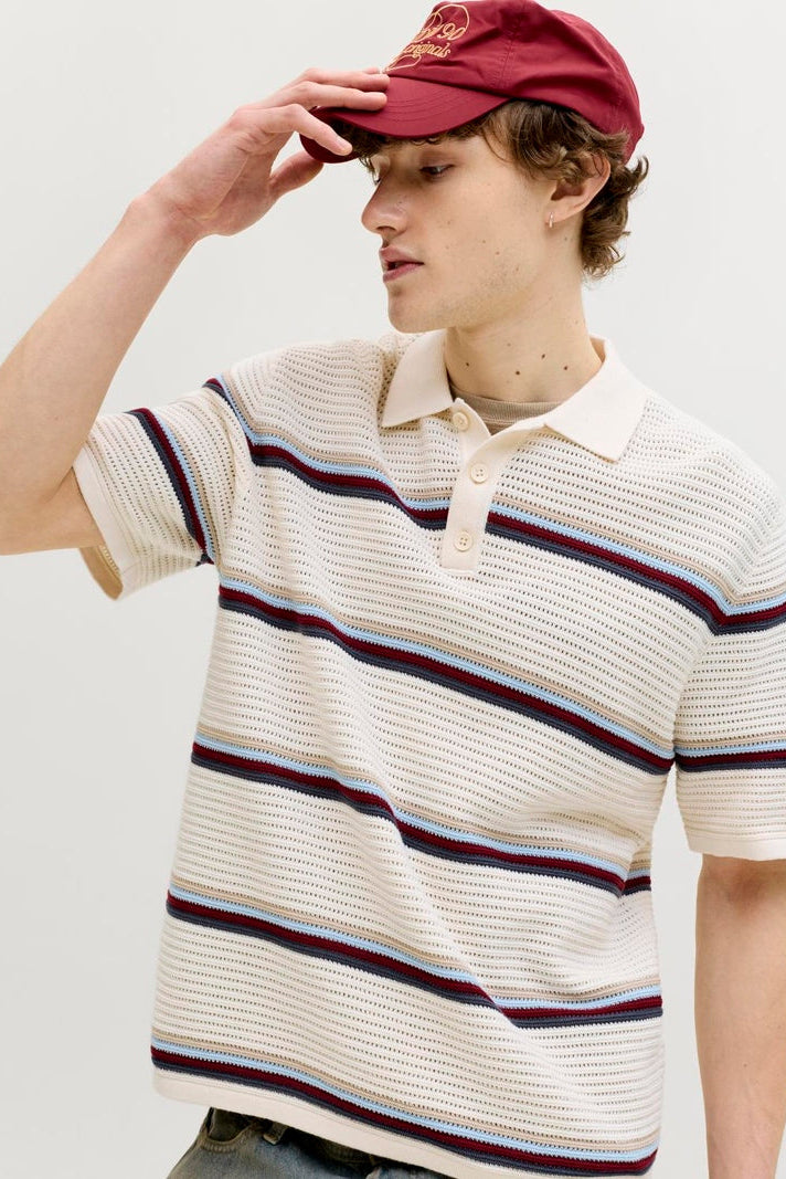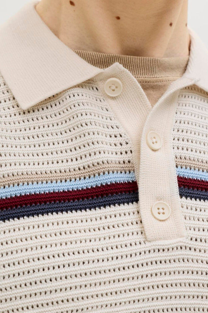 Jormaine Knit Stripe Polo Sea Salt
