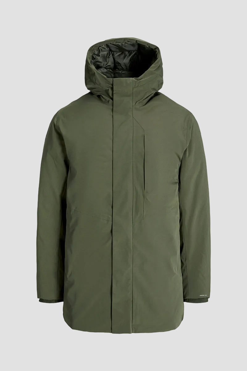 - Ensfärgad parkasjacka med huva