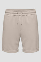Dessa shorts har en avslappnad passform och är designade för att ge dig en bekväm känsla genom hela dagen. De kommer i en ljusgrå ton som enkelt kan matchas med olika stilar. Midjan är försedd med dragsko för en justerbar och säker passform. Materialmixen kombinerar polyester, viscose och elastan, vilket ger en mjuk känsla samtidigt som shortsen behåller sin form och ger god rörelsefrihet.