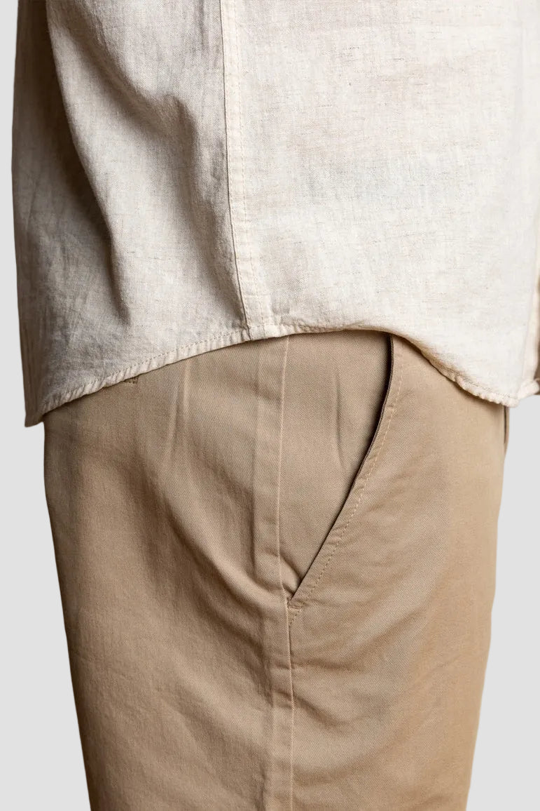 Dessa Mitchell twill shorts är ett bekvämt och stilrent val för varma vår- och sommardagar. Tillverkade i en mjuk och slitstark bomullsblandning med en liten andel elastan, vilket ger shortsen en lätt stretch för optimal rörlighet. Modellen i ljus sandfärg passar bra för avslappnade eller mer uppklädda tillfällen.