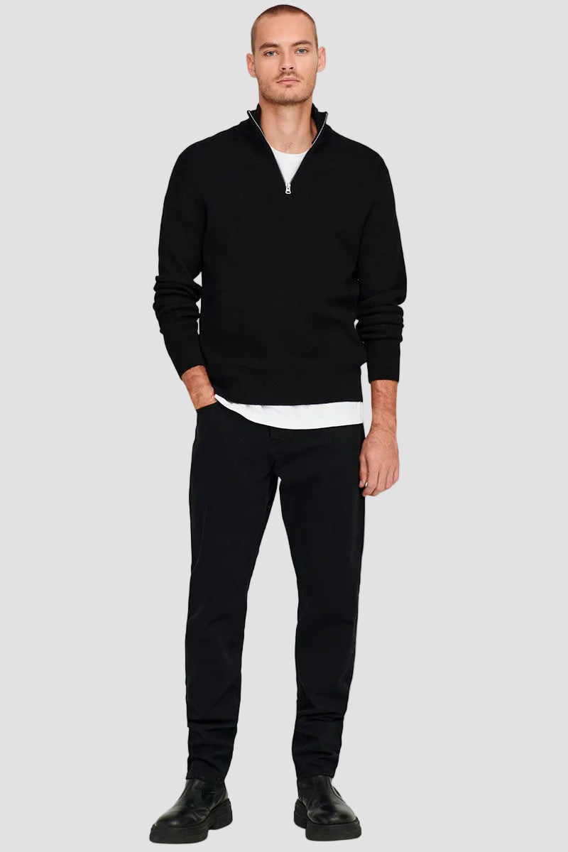 PHIL COTTON HALF ZIP KNIT Black