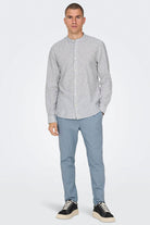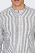 Caiden LS Mao Stripe Linen Shirt Dark Navy