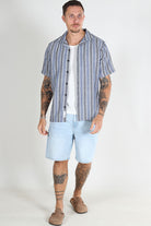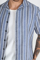Trev Regular SS Structure Stripe Shirt Navy Blazer
