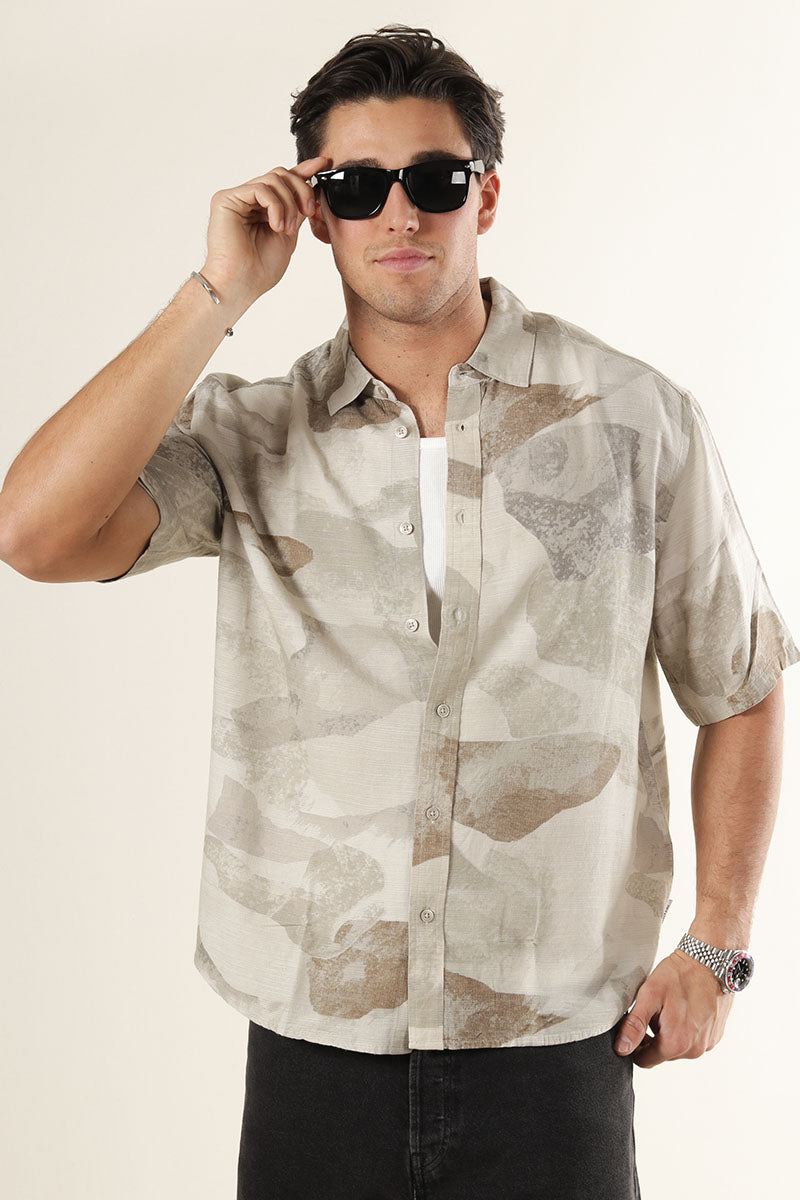 Bud Relaxed Fit AOP Linen Shirt Chinchilla
