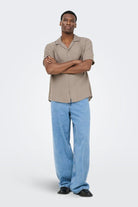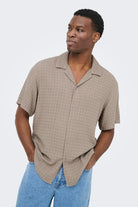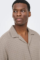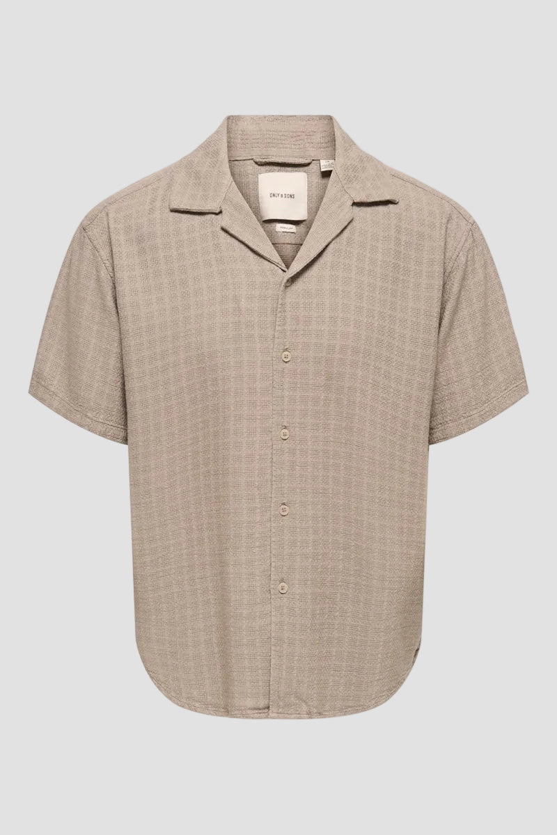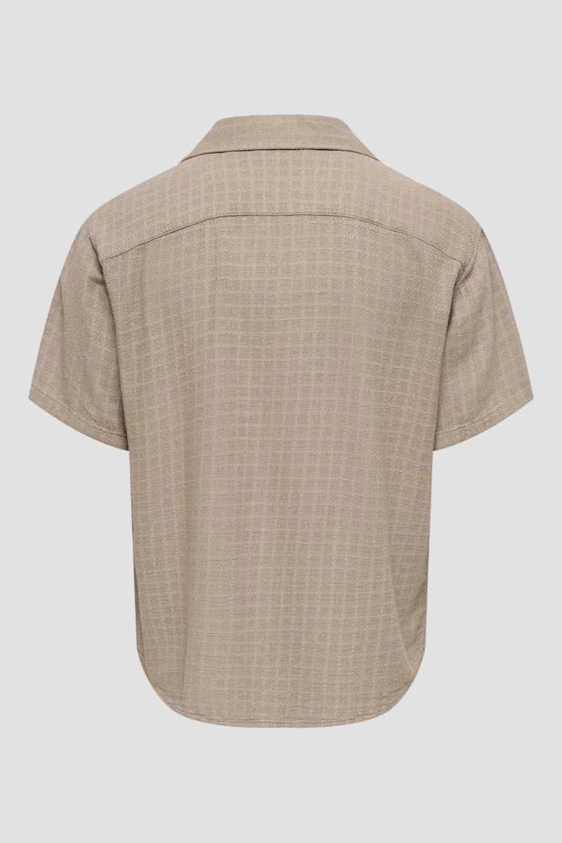 Denna skjorta har en tidlös design med korta ärmar och knäppning framtill, utformad för en avslappnad och bekväm passform. Materialen ger en mjuk och luftig känsla, perfekt för både vardagsbruk och mer formella tillfällen. Den subtila färgen i desert taupe ger en lättmatchad stil.