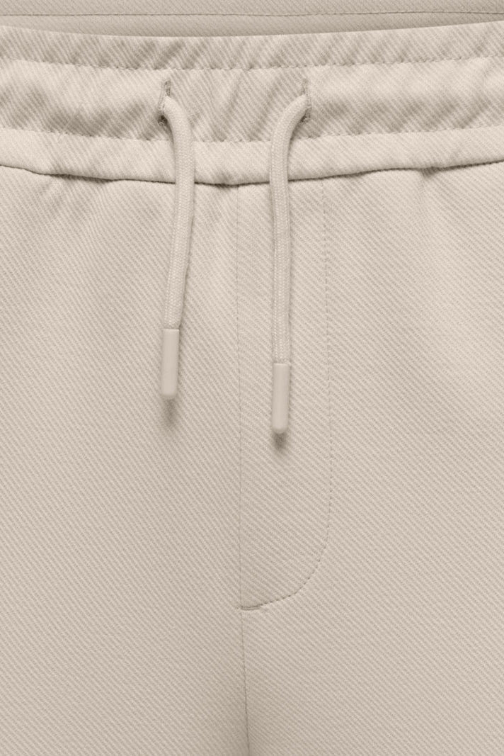 Dessa shorts har en avslappnad passform och är designade för att ge dig en bekväm känsla genom hela dagen. De kommer i en ljusgrå ton som enkelt kan matchas med olika stilar. Midjan är försedd med dragsko för en justerbar och säker passform. Materialmixen kombinerar polyester, viscose och elastan, vilket ger en mjuk känsla samtidigt som shortsen behåller sin form och ger god rörelsefrihet.
